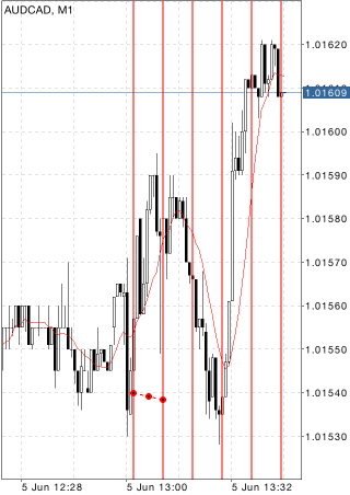 Cycle LinesTo draw cycle lines, select this object and then touch the chart to choose the initial point of the lines and then drag your finger to set the period. There is a trendline between the first and second vertical lines; it helps to draw grounded cycles upon price variations. |