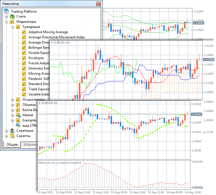 Для удобства использования все индикаторы разделены на группы в окне "Навигатор".