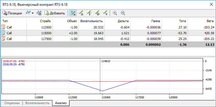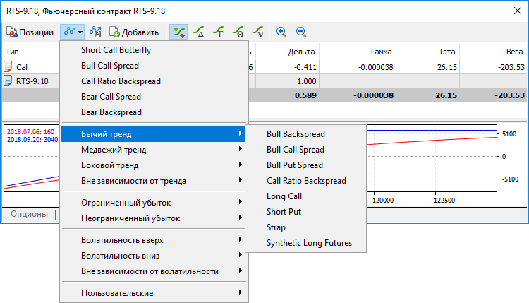 Все встроенные стратегии предполагают покупку и продажу опционов с одинаковой датой истечения.